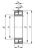 | d | D | B | D1 | Da max | da min | ds | ns | ra max | r min | m | Cr | e | Y1 | Y2 | Cor | Y0 | nG | nB | Cur |